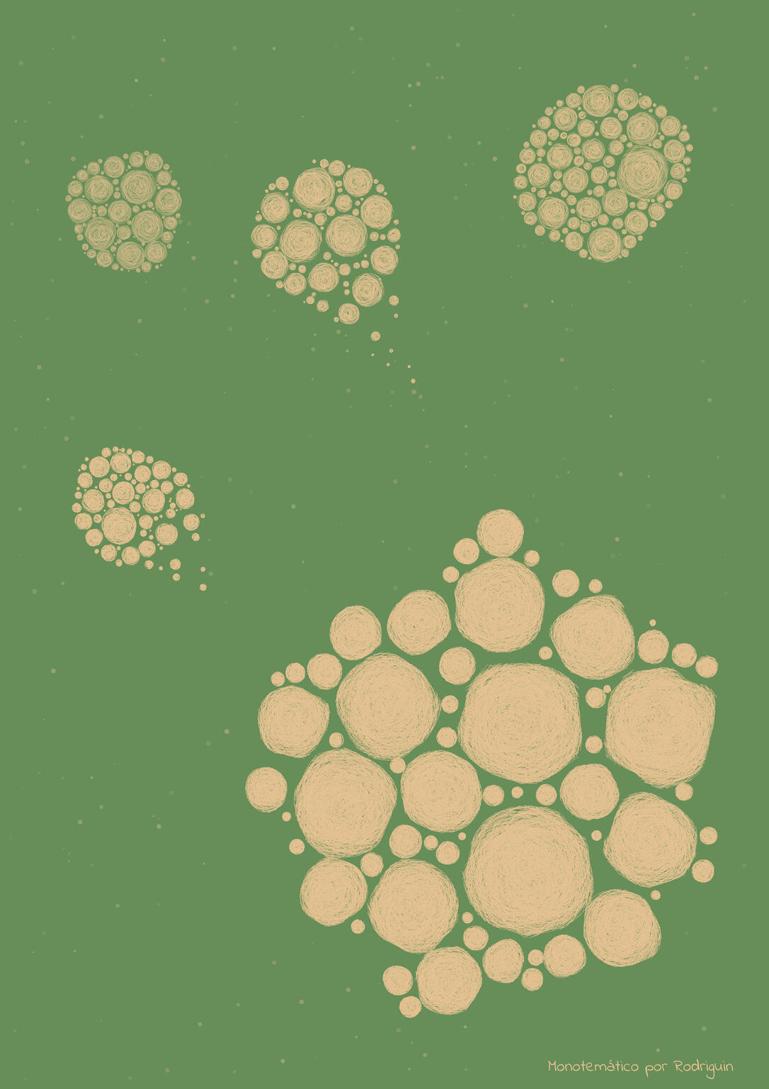 Creada con circle packing y trazos simulados a mano, esta colección hermana de Monotemático multiplica los colores para reflejar la riqueza de lo diverso.